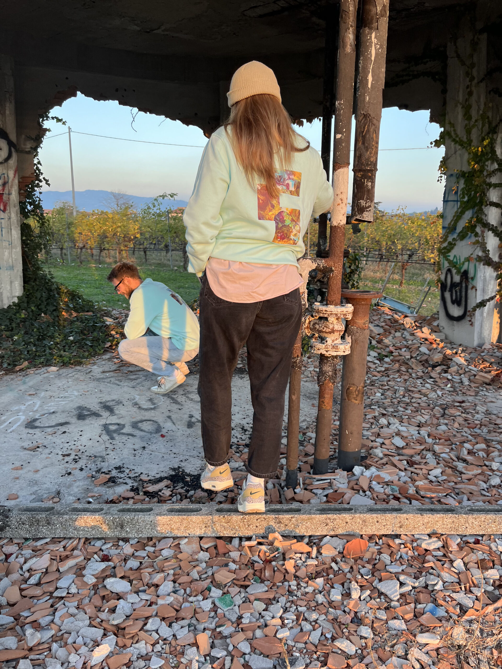 Così l’arte esce dallo studio, attraversa la materia e si posa sui vestiti, trasformandosi in un’esperienza da vivere, non solo da guardare